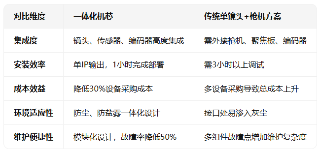 典型案例:在某大型石化园区监控项目中,采用一体化机芯的方案比传统方案减少40%设备数量,年维护成本降低15万元。